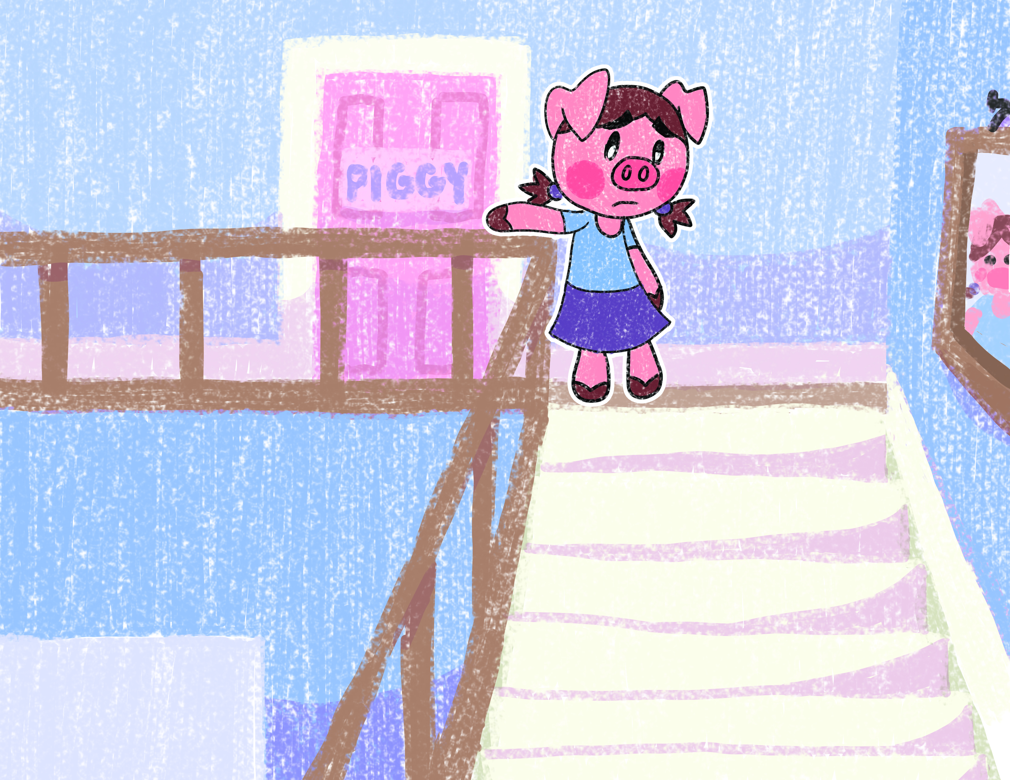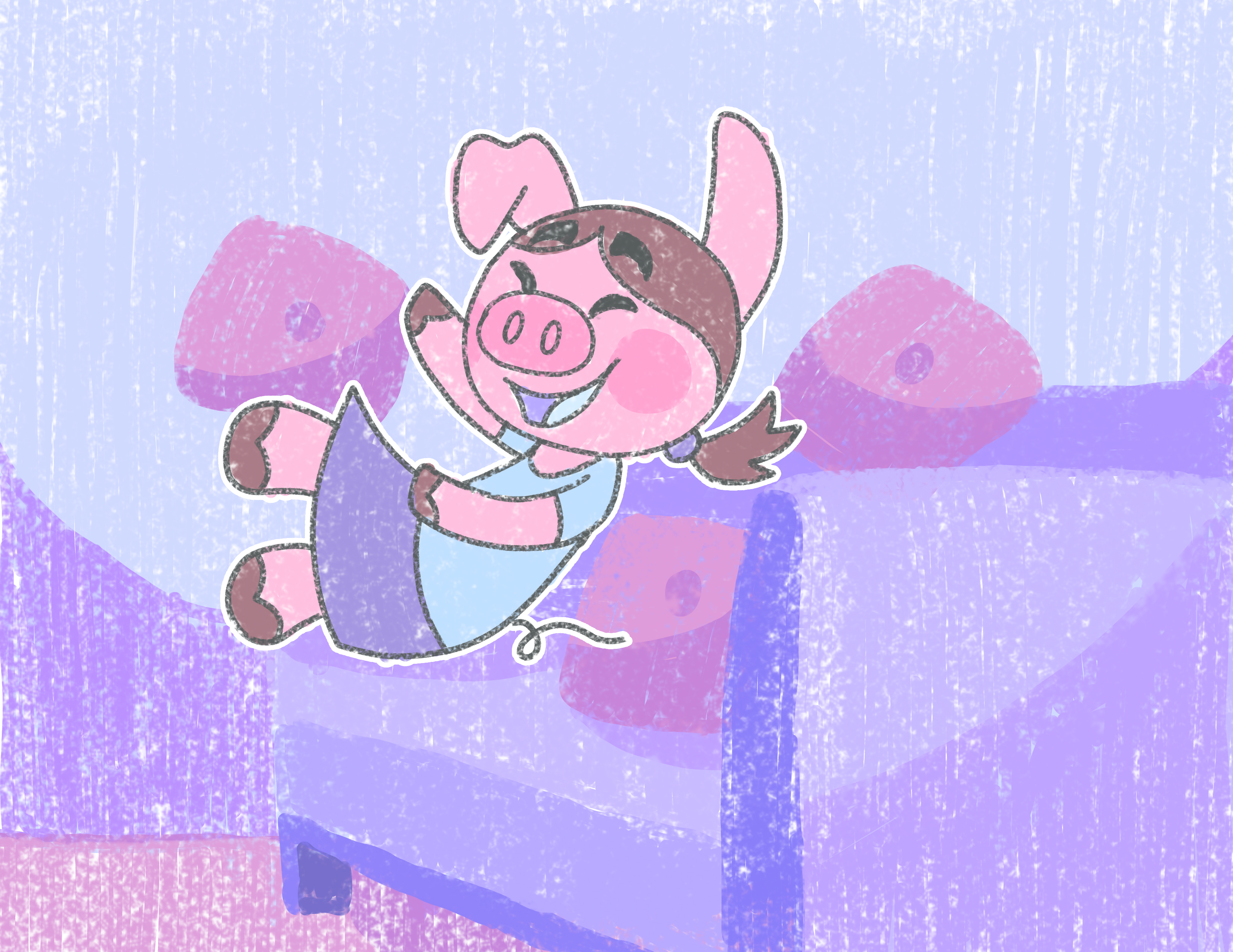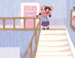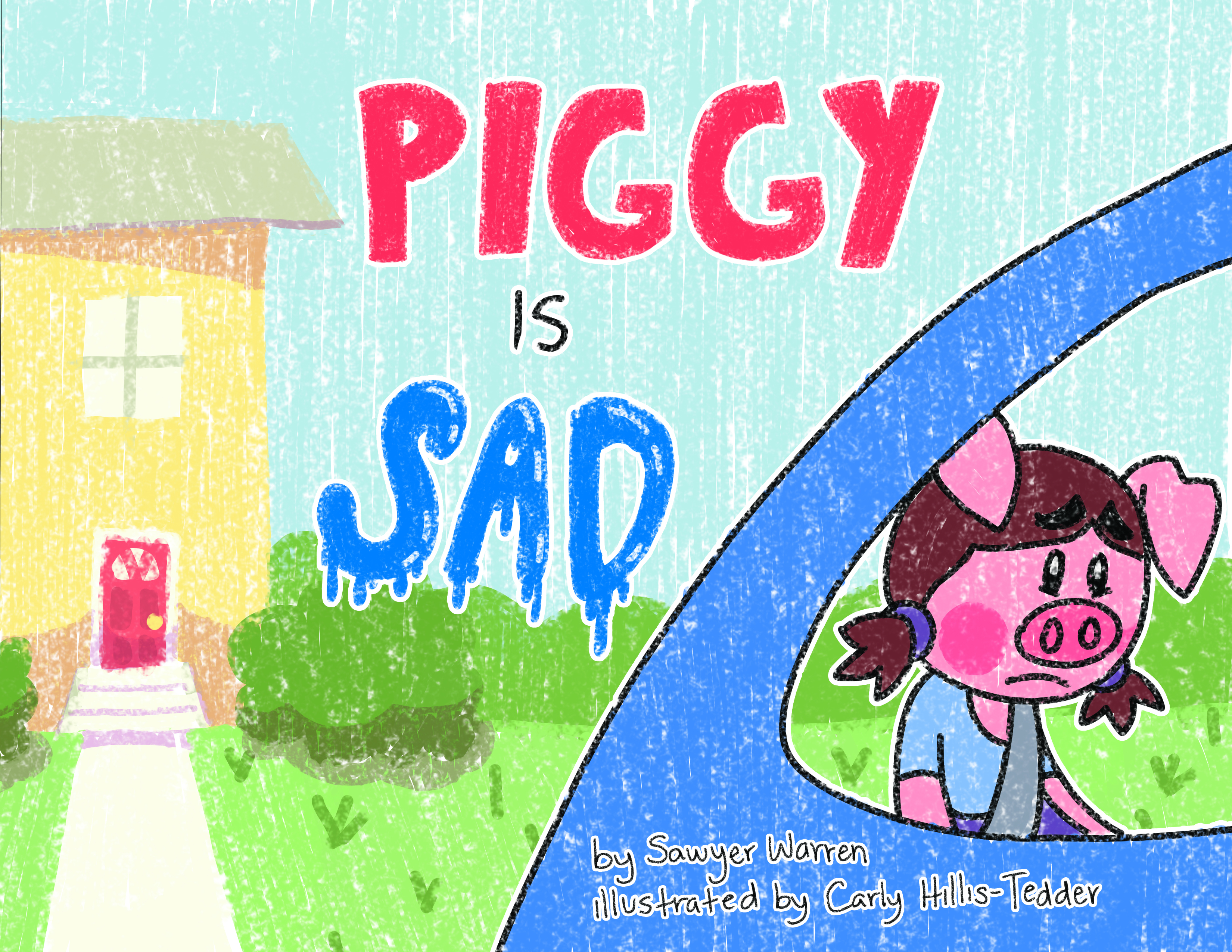Sample illustrations from the children's book, PIGGY IS SAD.