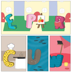 Sample illustrations from the alphabet story, THE XYZ BOOK.